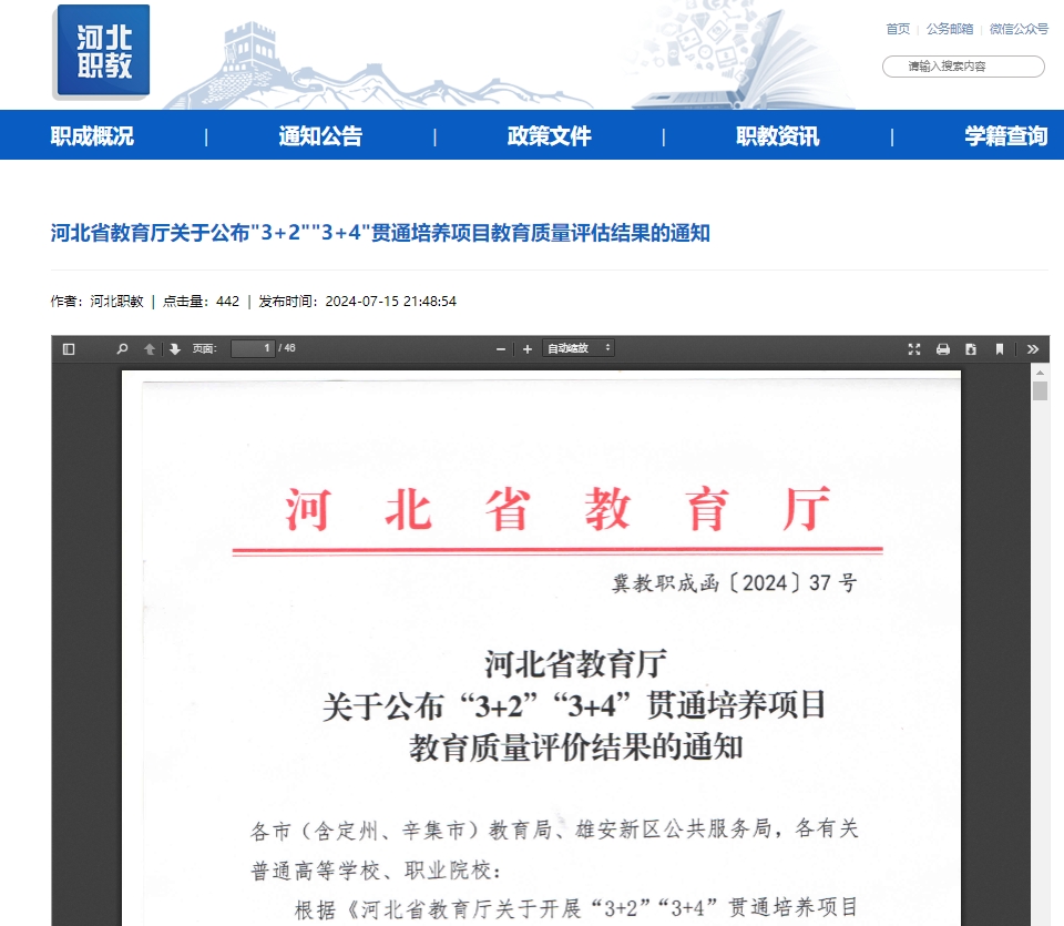 河北“3+2”“3+4”貫通培養(yǎng)項(xiàng)目教育質(zhì)量評(píng)價(jià)結(jié)果