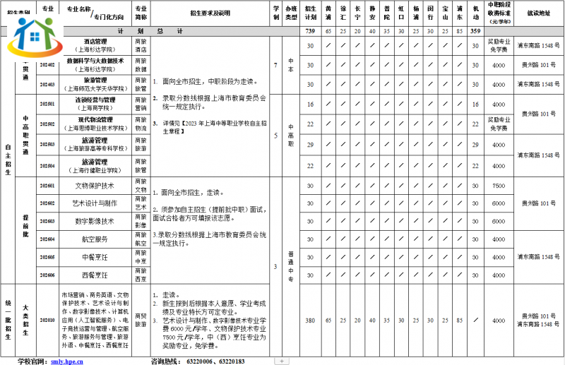 本文標題:2023年上海市商貿(mào)旅游學校各專業(yè)招生計劃表