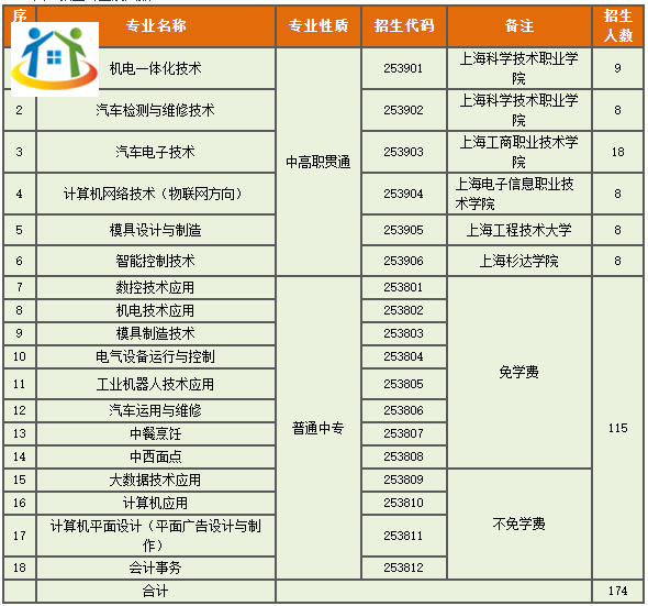 二、招生計劃數(shù):174人,其中包含中高職貫通59人。