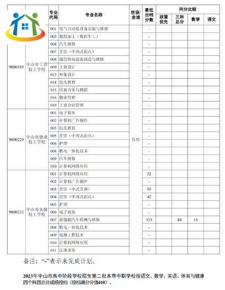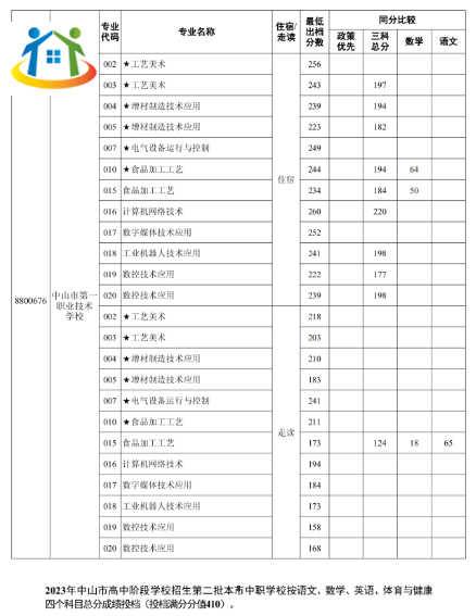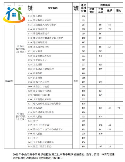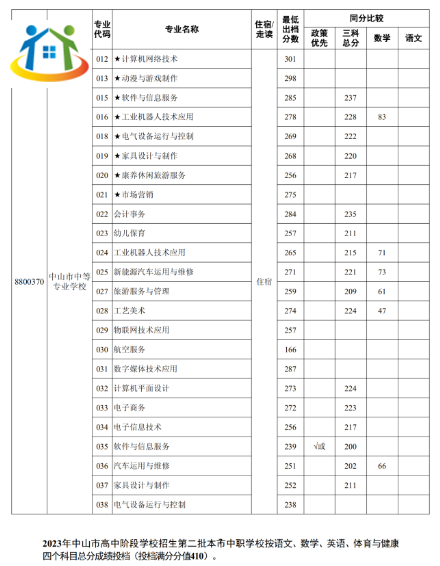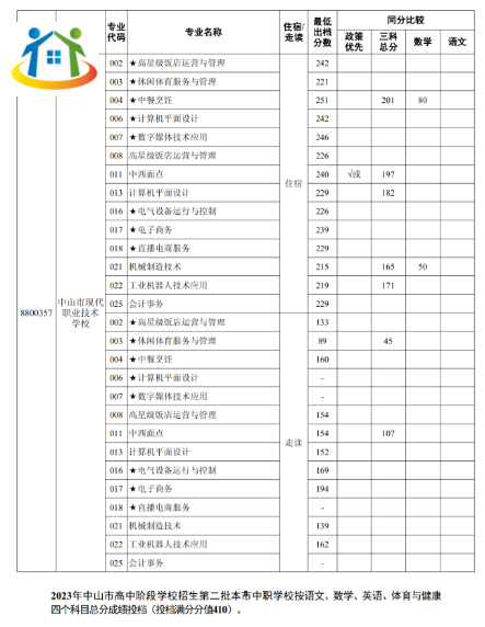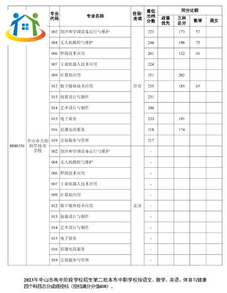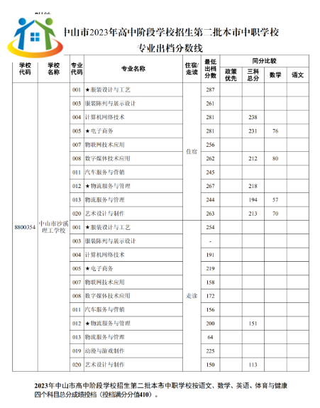 2023年廣東省中山中職錄取分數(shù)線