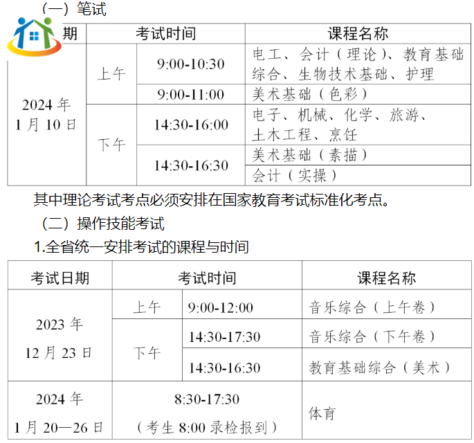 2024年第一次專業(yè)技能課程考試開考課程為:《電工》《電子》《機(jī)械》《化學(xué)》《會(huì)計(jì)》《旅游》《美術(shù)基礎(chǔ)》《教育基礎(chǔ)綜合》《音樂綜合》《土木工程》《生物技術(shù)基礎(chǔ)》《護(hù)理》《烹飪》和《體育》共14門課程,其中《音樂綜合》《美術(shù)基礎(chǔ)》和《體育》3門課程不考理論,只考操作技能;《土木工程》只考理論,不考操作技能。
