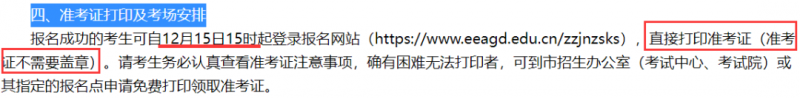 印準(zhǔn)考證可直接打印使用,不需要蓋章。確有困難無(wú)法打印者,可到市招生辦公室(考試中心)或其指定的報(bào)名點(diǎn)申請(qǐng)免費(fèi)打印領(lǐng)取準(zhǔn)考證。