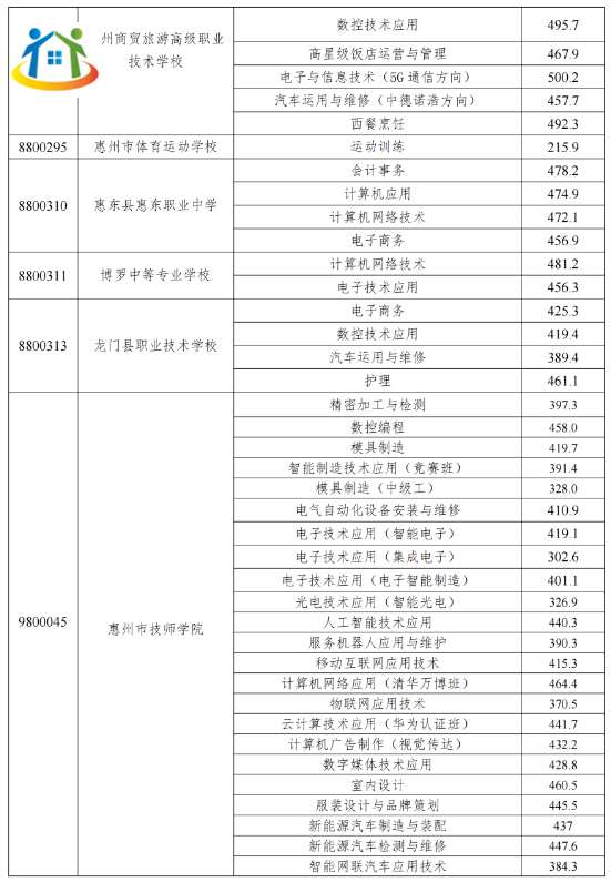 廣東惠州中職院校錄取分?jǐn)?shù)線多少?