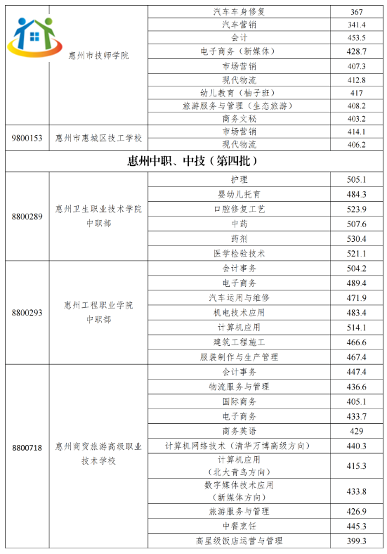 以上就是有關(guān)廣東惠州中職院校錄取分?jǐn)?shù)線多少的內(nèi)容,僅供參考,最終情況請(qǐng)以報(bào)考當(dāng)年實(shí)際情況為準(zhǔn)。更多廣東中職中專技工招生信息、廣東中考資訊,廣東技校資訊,敬請(qǐng)關(guān)注廣東初中升學(xué)網(wǎng)。