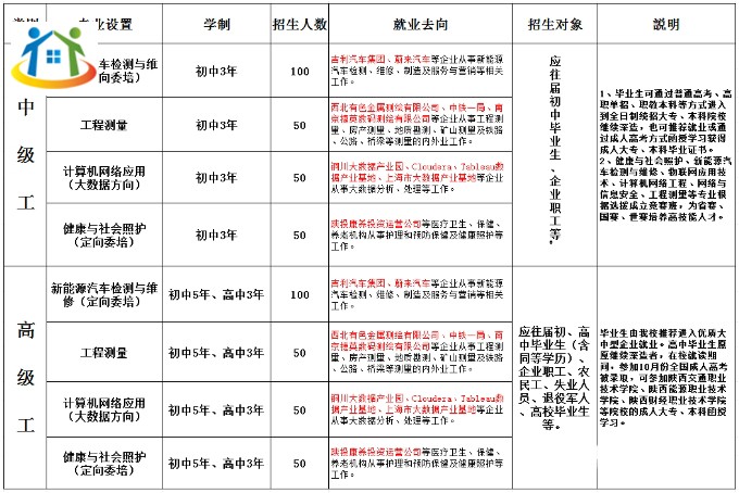 等級(jí):中級(jí)(初中起點(diǎn)三年)、高級(jí)(高中起點(diǎn)三年,初中起點(diǎn)五年)