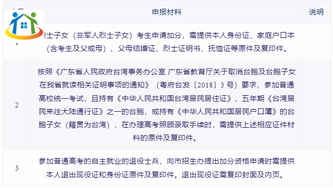 符合軍人子女加分和優(yōu)先錄取政策并申請加分資格和優(yōu)先錄取資格的考生,由駐粵部隊軍級以上單位政治機(jī)關(guān)進(jìn)行初審并負(fù)責(zé)將本單位參加高考的軍人子女名單(考生號、姓名、性別、優(yōu)待類別)和相關(guān)證明材料匯總在規(guī)定時間直接報省軍區(qū)政治部干部處,由省軍區(qū)政治部干部處審定后匯總造冊報省招生辦。省招生辦將根據(jù)省軍區(qū)政治部干部處審核結(jié)果,在省教育考試院網(wǎng)站上公示通過審核的加分資格考生名單。