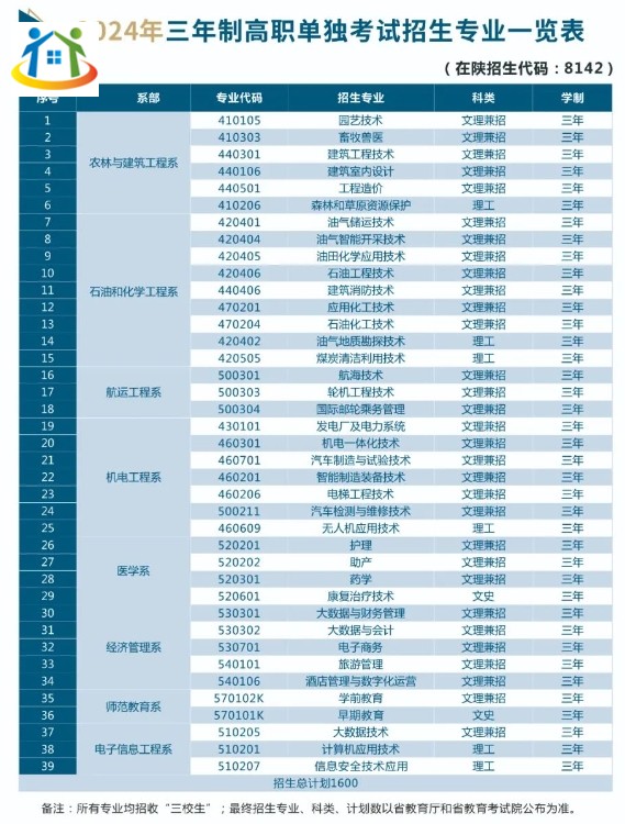2024年延安職業(yè)技術(shù)學(xué)院單招專業(yè)一覽,內(nèi)容包含各專業(yè)招生代碼、科類、學(xué)制、以及招生計劃總數(shù),希望能給想要繼續(xù)升學(xué)的小伙伴或