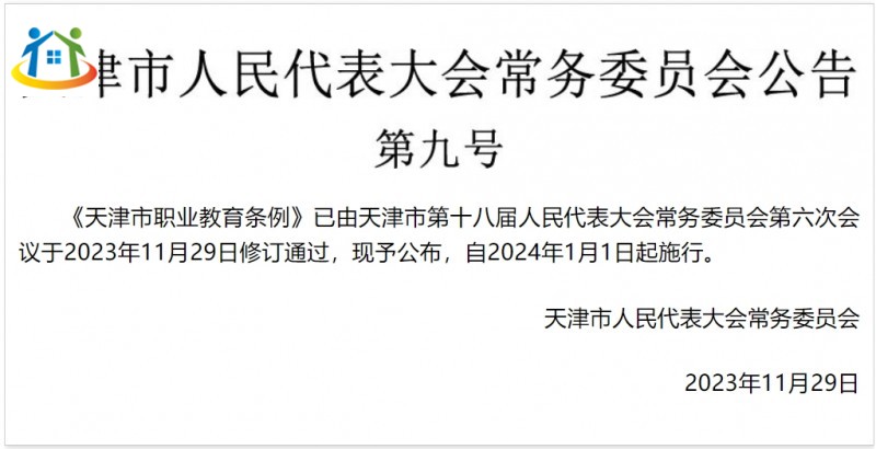 本文標(biāo)題:《天津市職業(yè)教育條例》修訂通過,自2024年1月1日起施行!