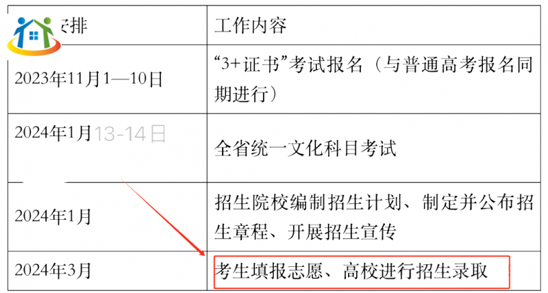3+證書考試大致安排為:考試—查成績(jī)—公布控制分?jǐn)?shù)線—填志愿—公布院校投檔錄取分?jǐn)?shù)線。