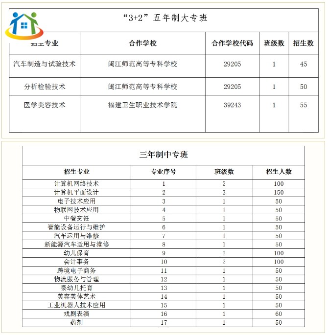(2)“3+2”五年制大專統(tǒng)一由合作的大專院校負(fù)責(zé)錄取,前三年在連江職業(yè)中專學(xué)校就讀,學(xué)費全免;后兩年在合作的大專院校就讀,按照大專院校的收費標(biāo)準(zhǔn)進行注冊;修滿五年全部課程且合格的學(xué)生由大專院校發(fā)放全日制大專畢業(yè)證書(學(xué)信網(wǎng)可查詢)。