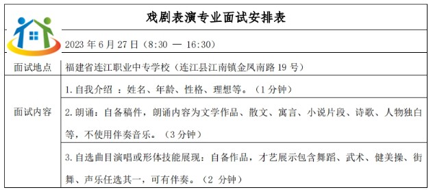(3)戲劇表演專業(yè):需經(jīng)過閩江學(xué)院昕影電影學(xué)院專家團隊面試合格后方可報考,并擇優(yōu)招收第一志愿填報我校的考生。具體面試時間及要求如下: