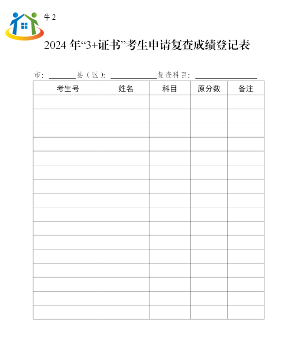 2.2024年“3+證書”考試考生申請復(fù)查成績登記表