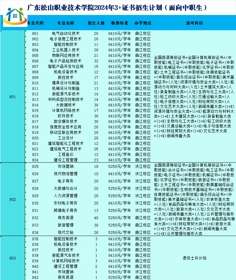 2024年廣東松山職業(yè)技術學院3+證書招生計劃