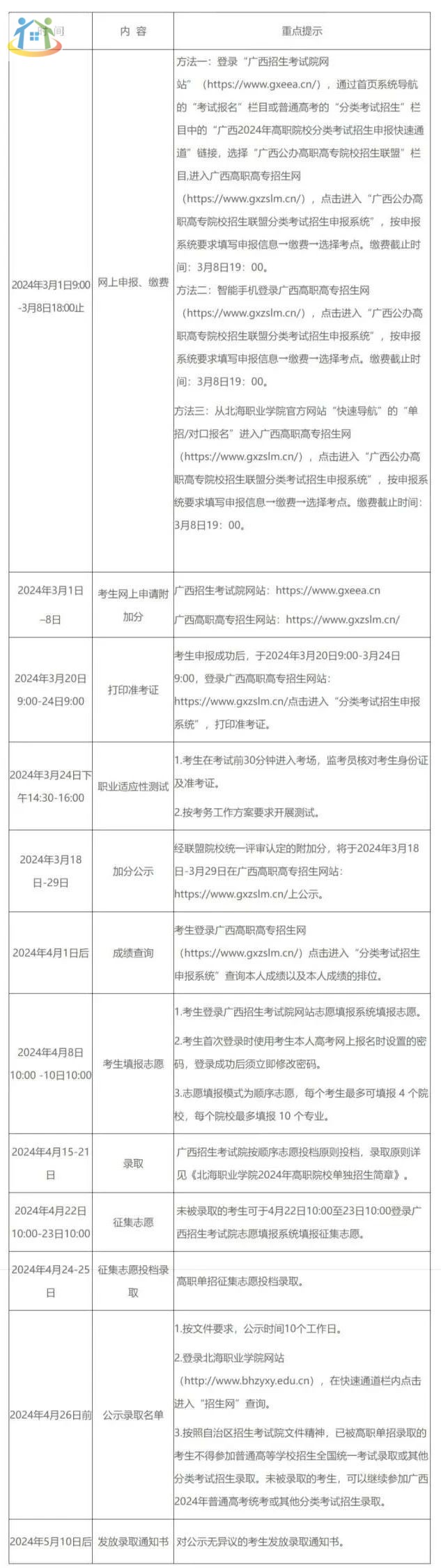 重點!北海職業(yè)學院2024年單獨招生重要時間表~廣西初中升學網(wǎng)整理相關(guān)內(nèi)容,希望對報考的同學們有所幫助。