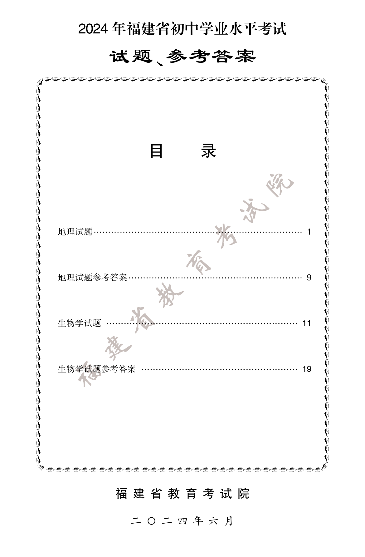 已公布!2024年福建中考生物地理試卷及答案一覽!