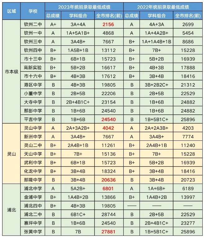 提前了解!2024年欽州各公辦高中統(tǒng)招錄取最低成績。2024年中考還沒開始,以下是2023年欽州各高中院校錄取情況,可作參考。